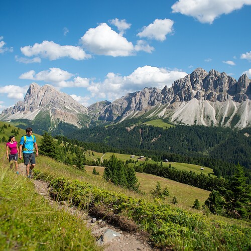 The Vista Hotel on the Plose is where hiking adventures begin. Here at 1,680 metres above sea level, all paths lead into nature right outside the hotel door. The nearby hiking area around the Würzjoch and the Villnösstal can also be reached quickly. Whether family hiking trails, panoramic tours or summit tours – the UNESCO World Heritage Site is just bursting with worthwhile destinations for your hiking holiday in the Dolomites.